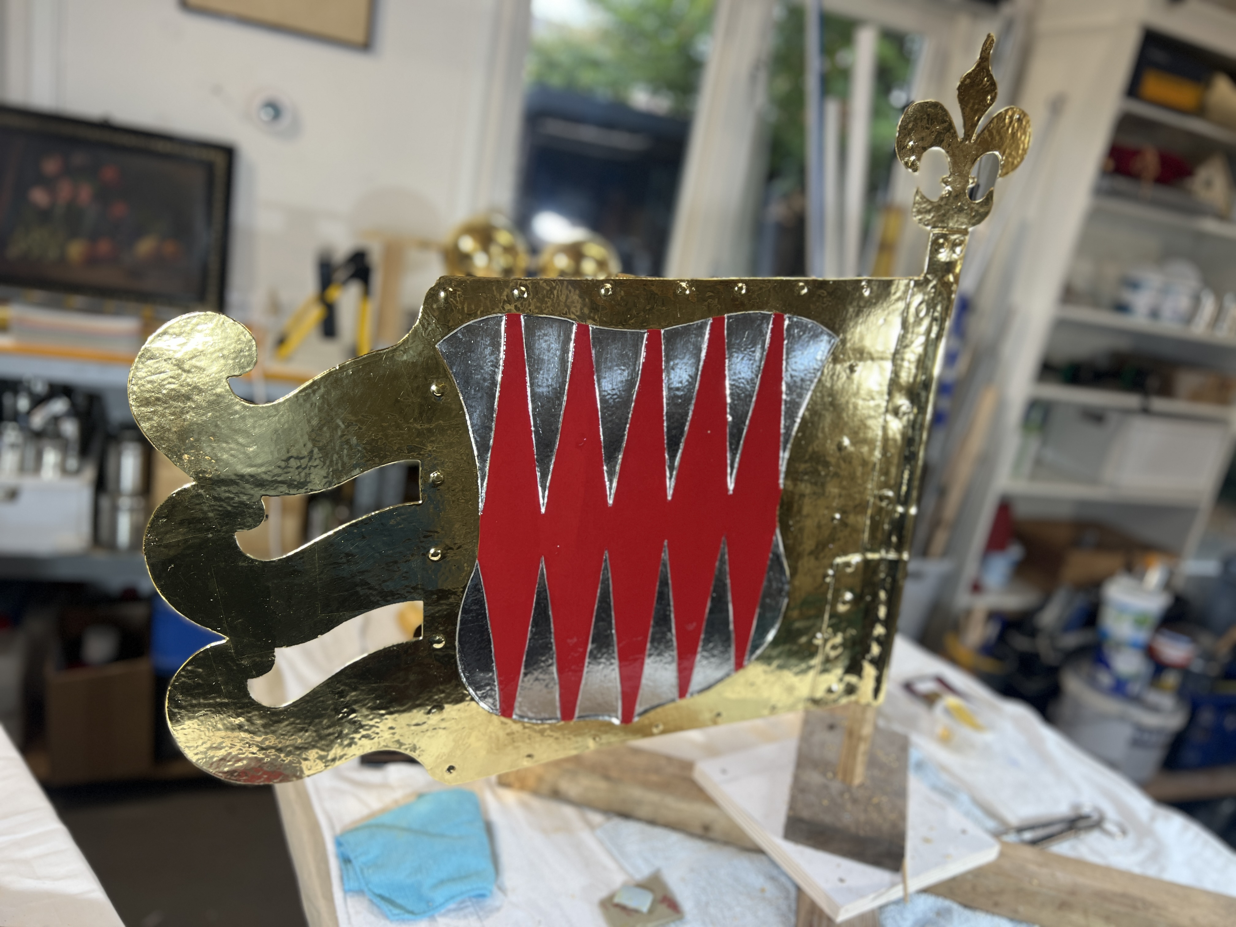 Afhankelijk van het object, de gewenste uitstraling en de werkomstandigheden (zoals binnen of buiten, op locatie of in mijn werkplaats), wordt een passend type bladgoud gekozen en de juiste werkwijze bepaald om tot een mooi en "stralend" resultaat te komen.